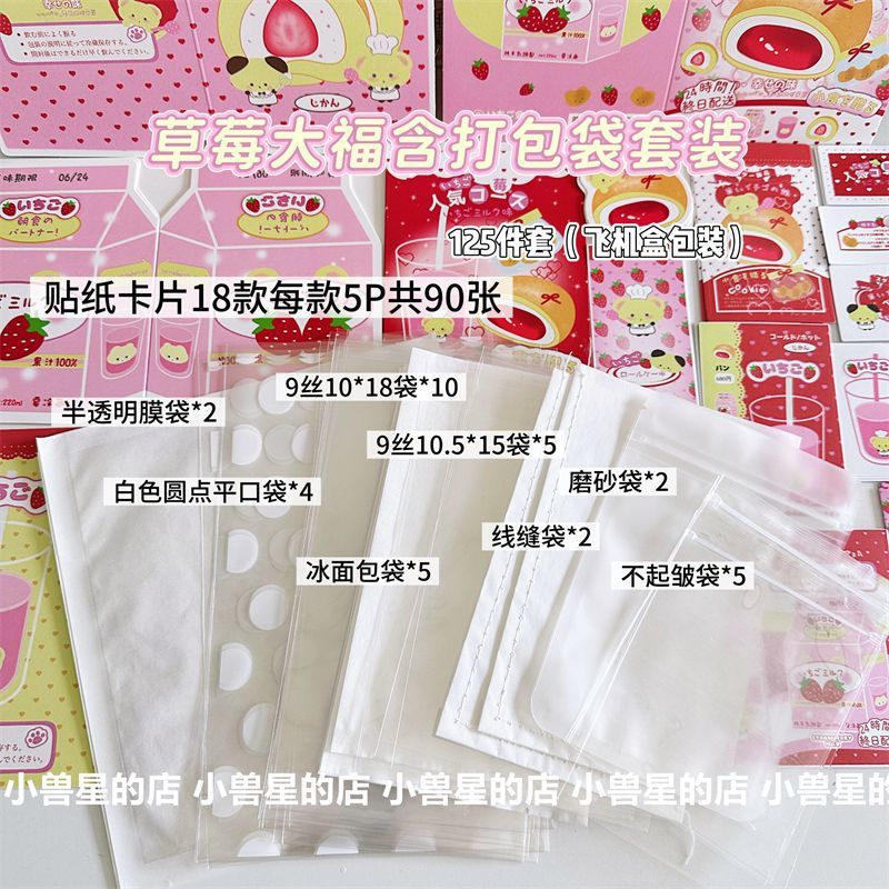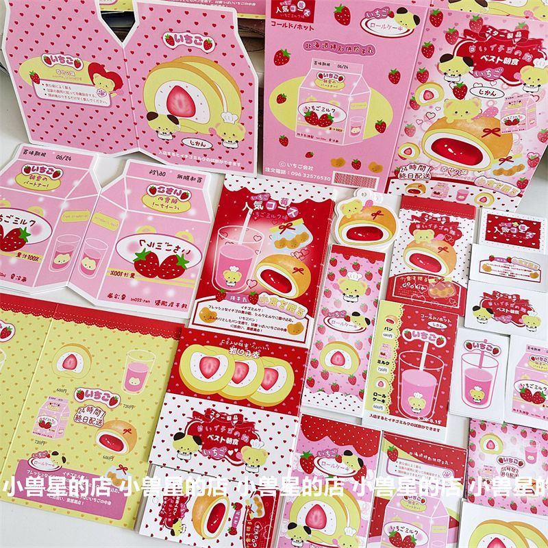 草莓大福美食文创覆膜打包材料折页卡头出卡素材封口贴纸手账贴纸