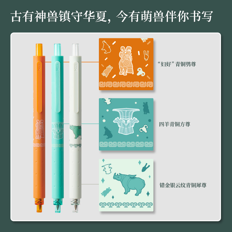 KACO菁点青铜时代中性笔按动式国家博物馆联名款0.5mm黑笔学生用刷题考试大容量速干签字笔创意复古可换替芯