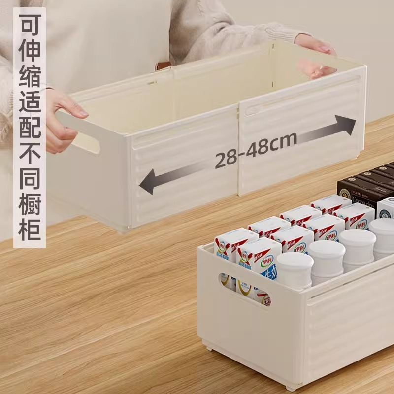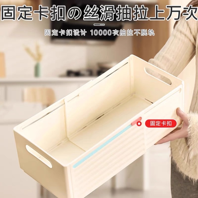 收纳橱柜收纳盒可伸缩抽屉式桌面零食厨房整理盒储物箱子长方形