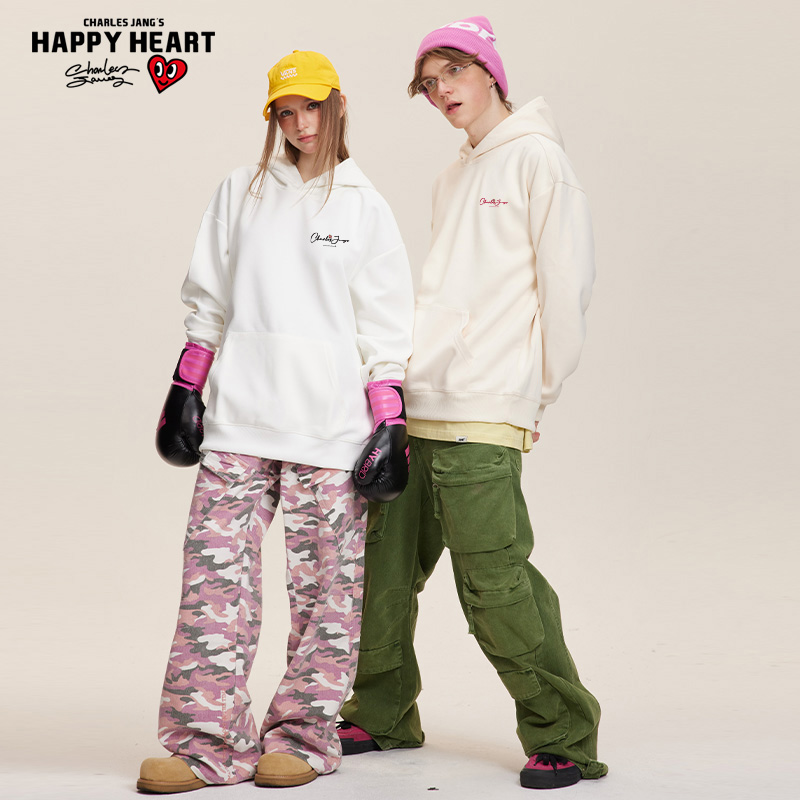 查尔斯桃心 卫衣男连帽花体字母印花春秋季新款百搭情侣上衣外套