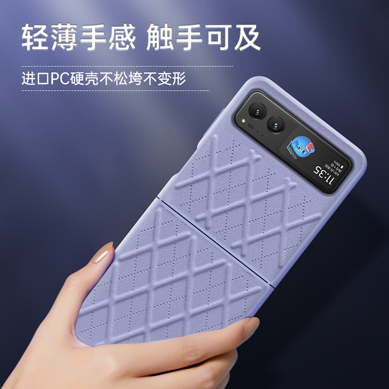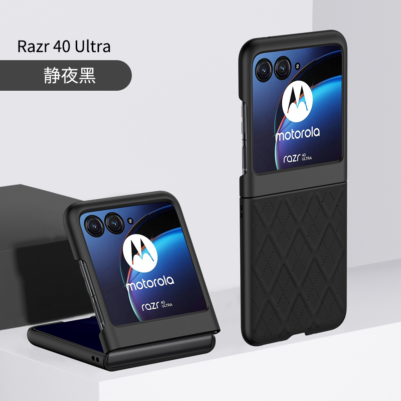 适用于 摩托罗拉motorazr40Ultra手机壳菱格高档皮料上下折叠屏moto razr40适当个性保护套素皮硬壳
