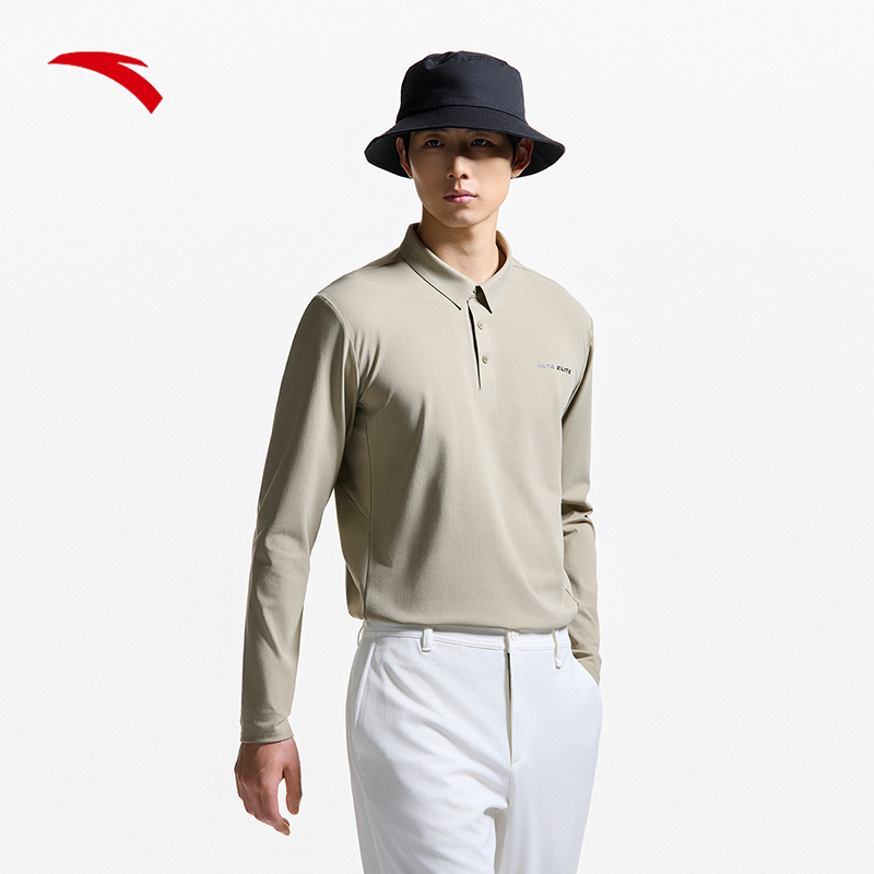 安踏精英系列丨长袖Polo衫男士秋季商务通勤翻领针织套头运动上衣