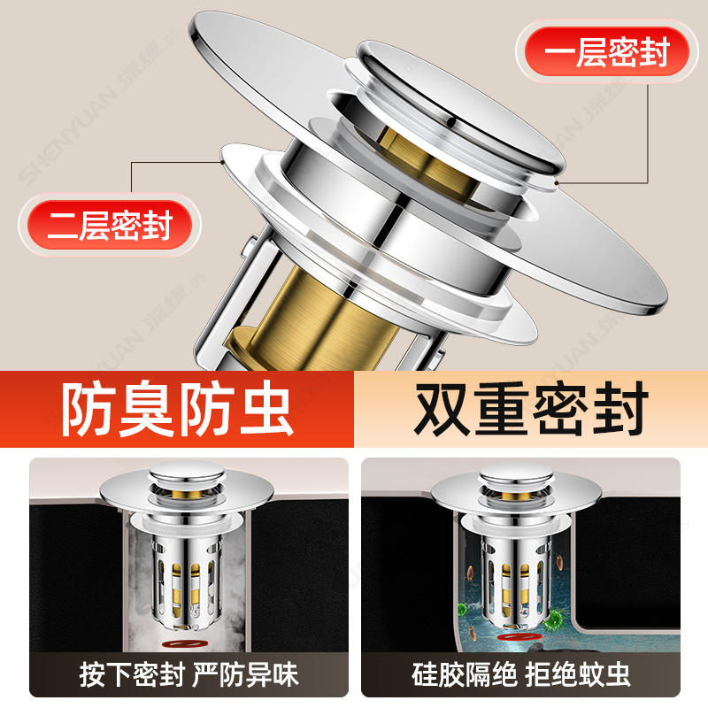 洗手盆漏水塞面盆弹跳芯按压式防臭下水器配件滤网地漏密封圈防虫