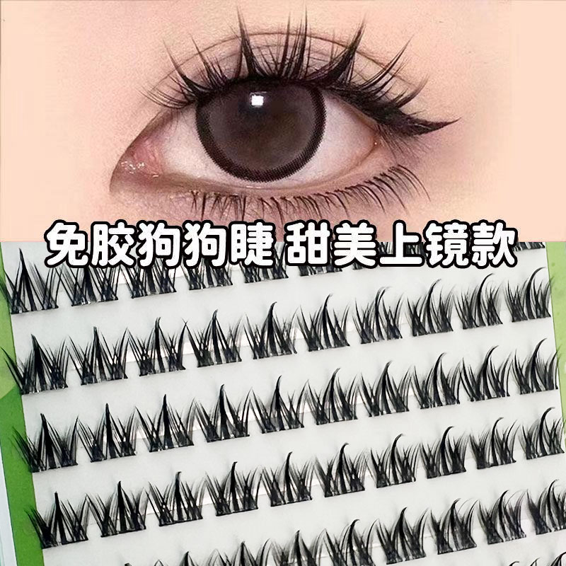 小黛仙免胶自粘犬系假睫毛漫画狗狗眼懒人三部曲单簇浓密太阳花