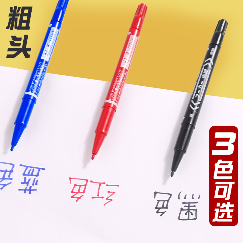 小双头记号笔勾线笔美术生专用快干防水笔油性不掉色快递用大头笔