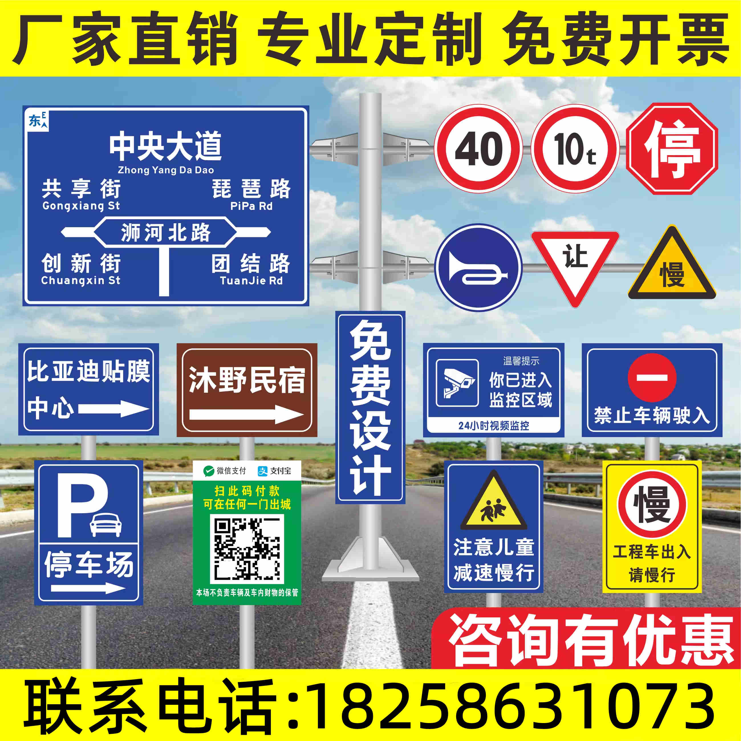 厂家定做交通标志牌路名牌指示牌警示牌铝合金反光路牌广告标识牌