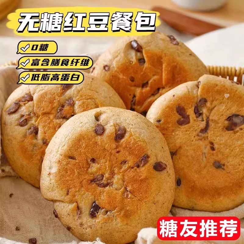 无糖低脂肪红豆面包无添加面粉粗粮营养血糖高人群孕妇减健身脂期