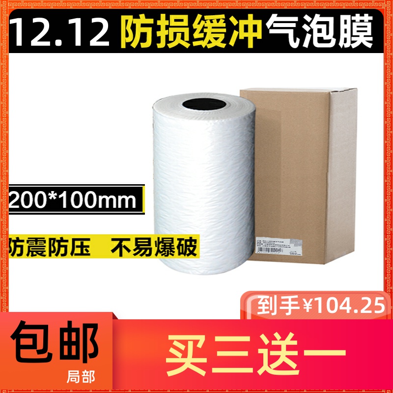 买三送一厚适用得力16411古德72002枕头型泡缓冲气垫机迷你型气泡袋气垫膜200*100mm型每卷300米 充气膜