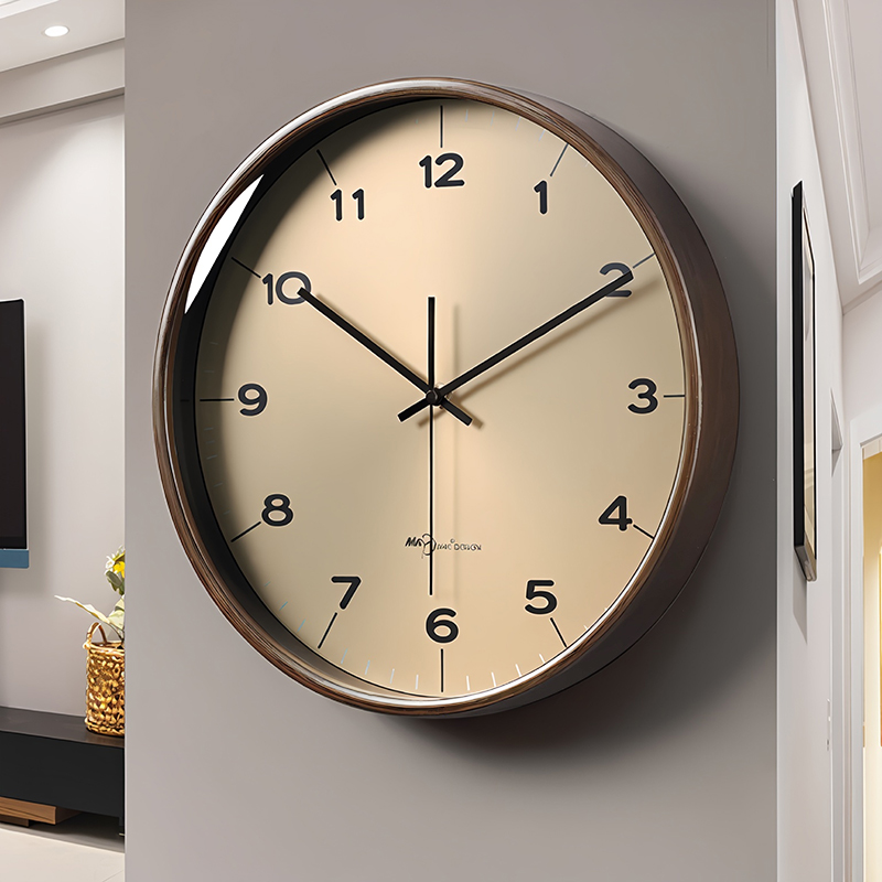 MJK简约实木钟表挂钟客厅2025新款家用石英钟挂表时钟挂墙静音