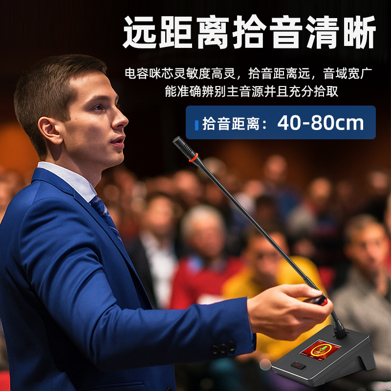 有线手拉手会议话筒讨论型视像跟踪方管鹅颈短杆台式电容麦克风