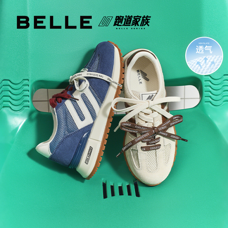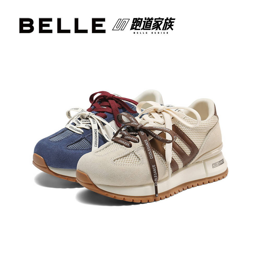 百丽透气网面阿甘鞋女2025秋新撞色厚底增高休闲鞋B2813CM5