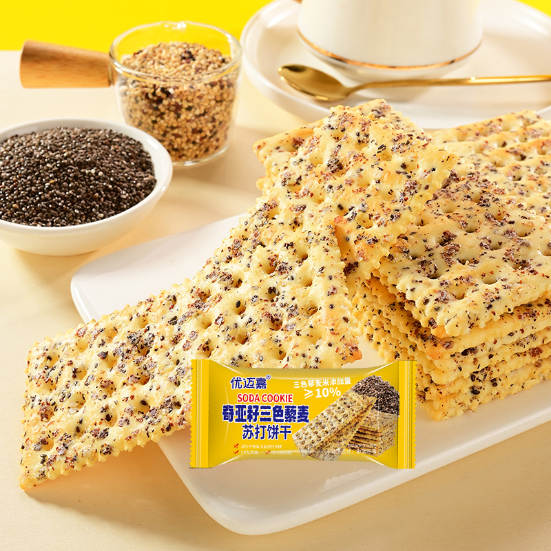 煌记三色藜麦奇亚籽苏打饼干高膳食纤维无蔗糖饼干办公室休闲零食