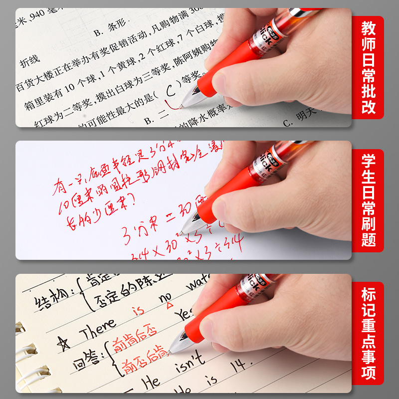三年二班×点石红笔速干学生用红色中性笔老师专用粗头批改作业高颜值柔绘笔直液式刷题笔圆珠笔勃艮第红水笔