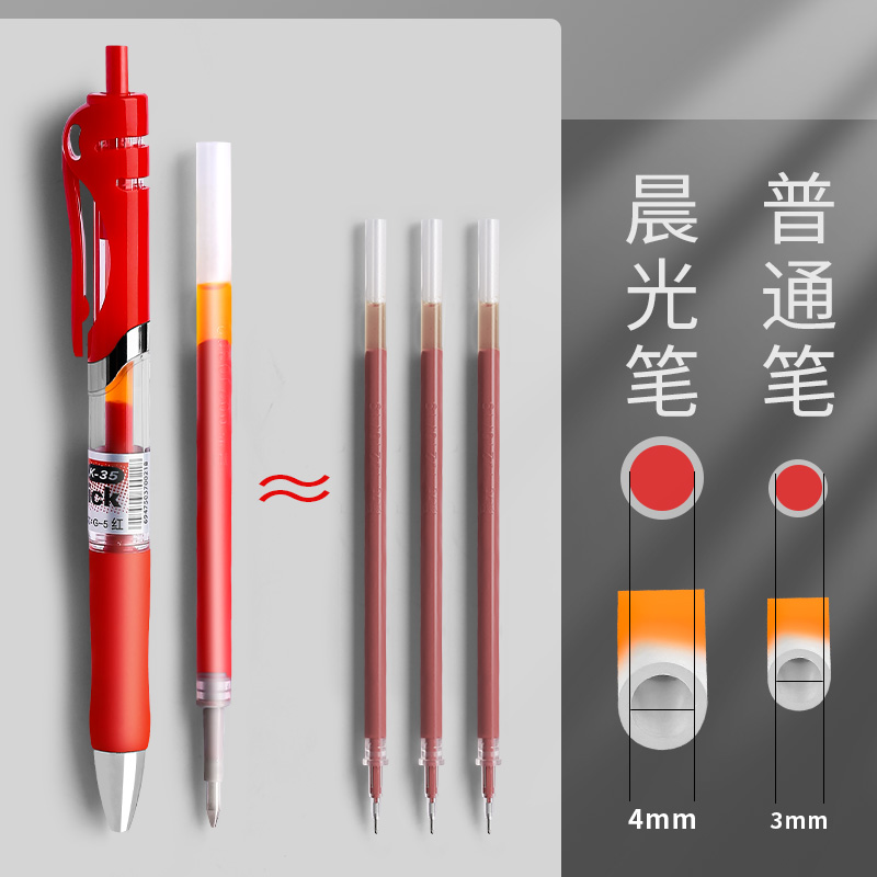 晨光红笔学生老师专用批改作业红色中性笔按动0.5圆珠笔水笔签字笔教师按压直液式高颜值走珠笔水性笔红笔芯
