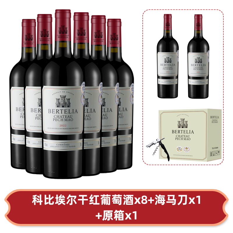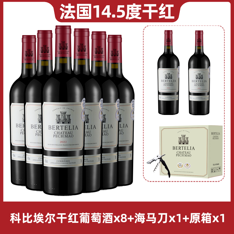 柏特利雅科比埃尔干红葡萄酒14.5度红酒750ml*8瓶整箱送礼精选