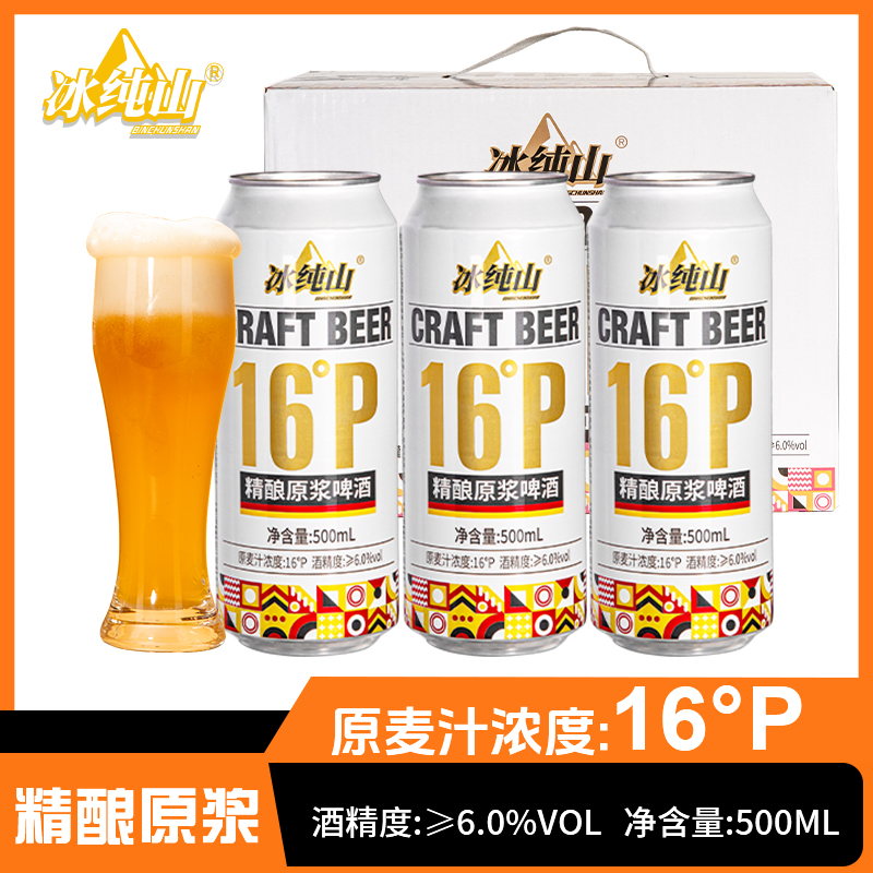 冰纯山无添加全麦啤酒整箱罐装精酿原浆发酵16P*24罐麦芽一瓶酿造
