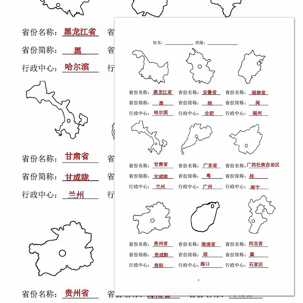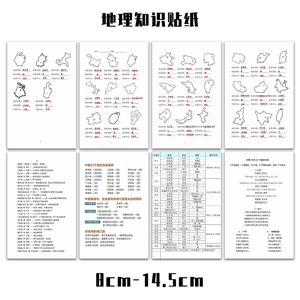 中国基础地理知识会考复习省份及其简称知识点汇总归纳速记贴纸