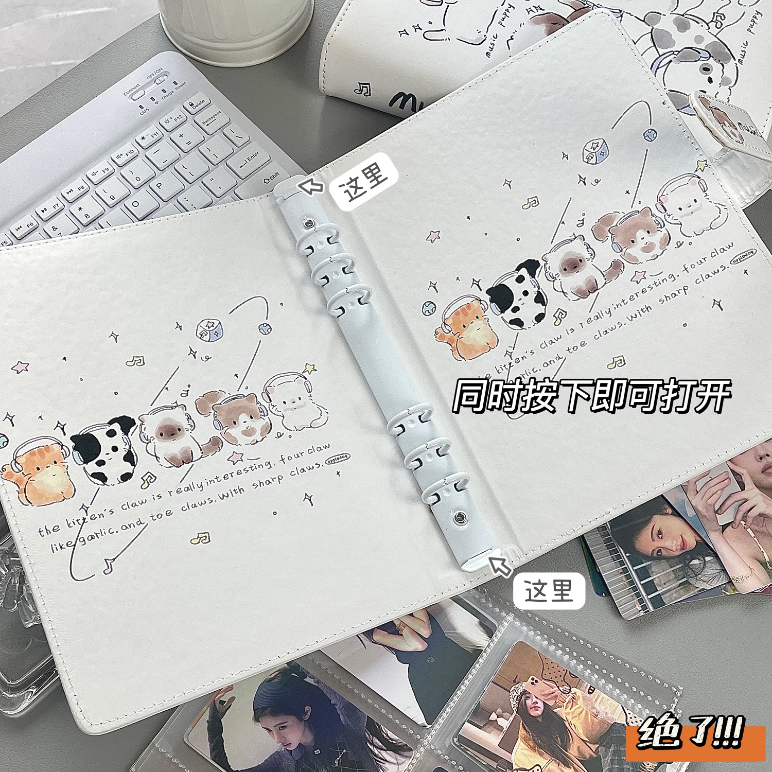 音乐猫咪证件照A5四宫格皮质活页卡册3寸拍立得追星小卡收纳相册