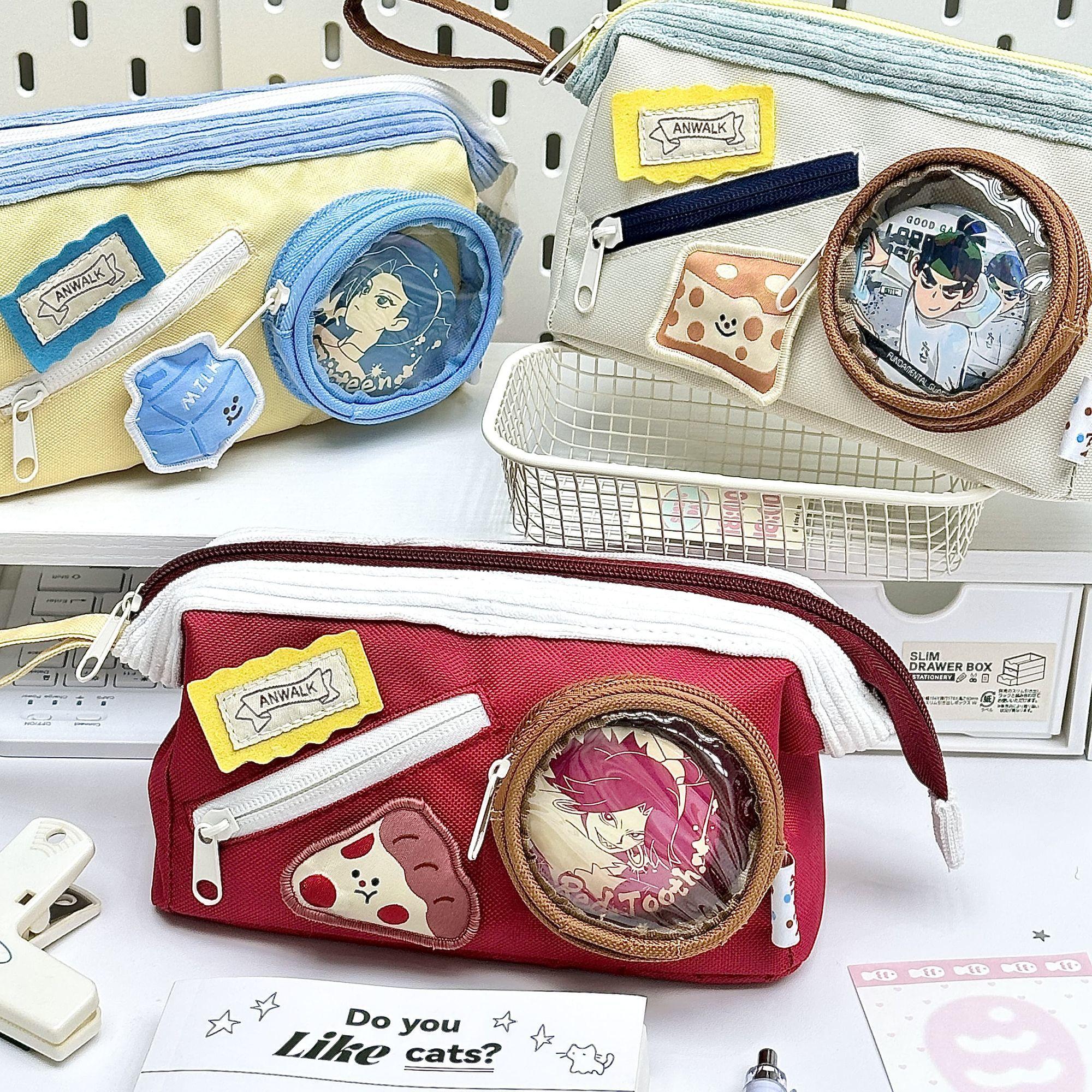 爆款吧唧痛袋多功能刺绣笔袋学生韩版初中不撞款笔袋高颜值大容量