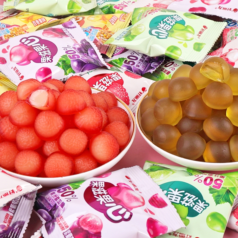 果滋果心剥皮软糖果网红爆款橡皮糖儿童解馋零食夹心糖小包散装