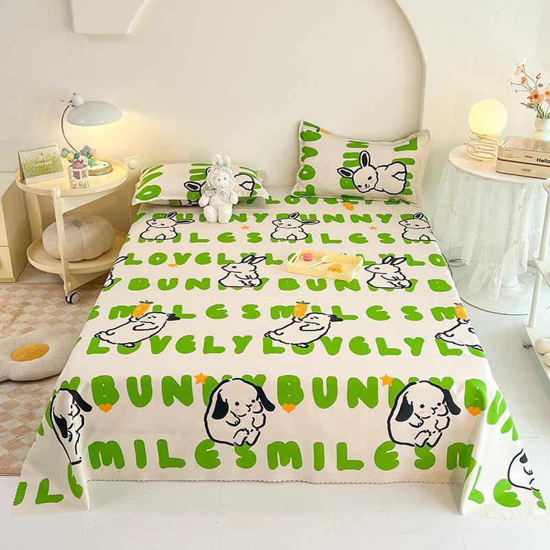 ins单件水洗棉印花单品床单磨毛学生宿舍芦荟棉单人双人被单粉色