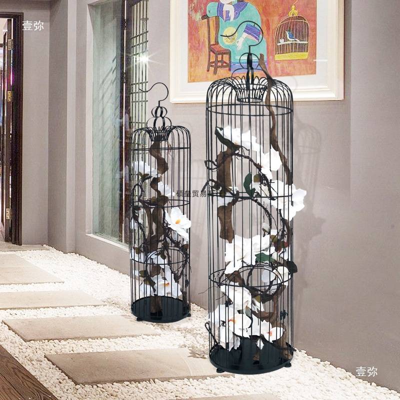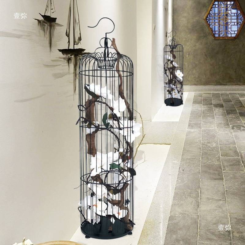 鸟笼黑铁艺鸟笼摆件鸟笼鸟笼花艺样板房大号白色欧式落地装饰婚庆