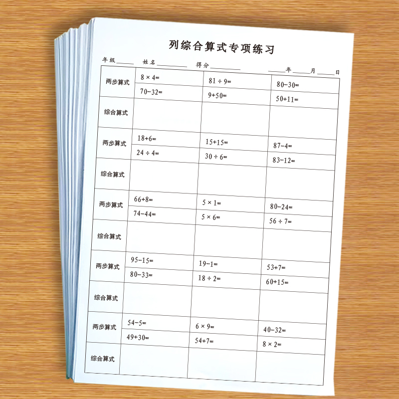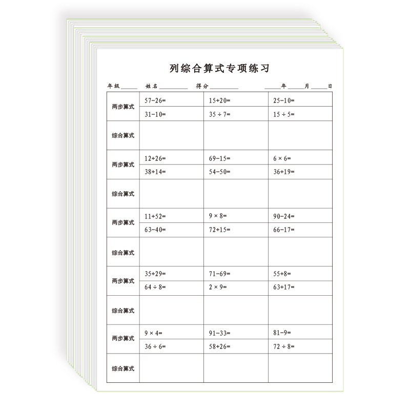 列综合算式专项练习题小学生二年级分步算式合并成综合算式加减乘除计算口算专项练习题