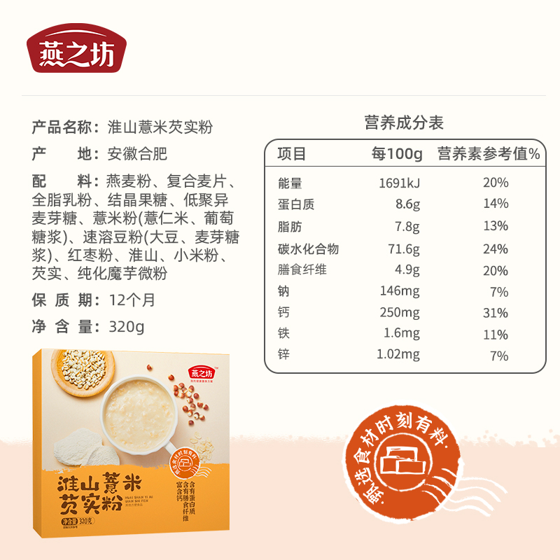 淮山薏米芡实粉320g猴菇山药黑豆黑米早餐代餐办公室冲饮粉