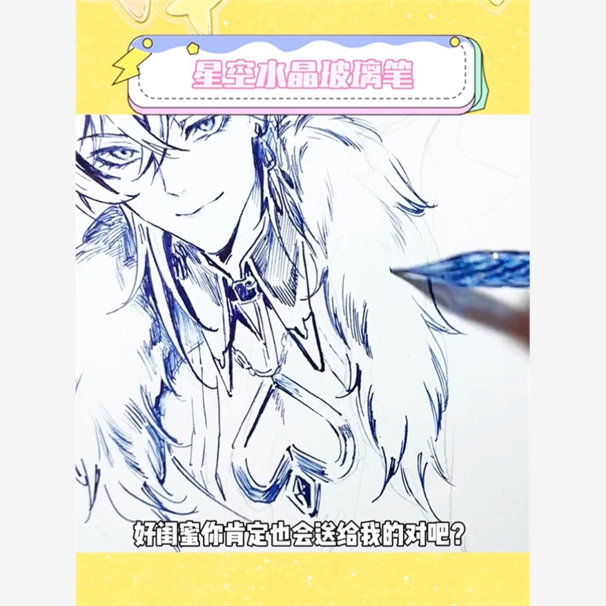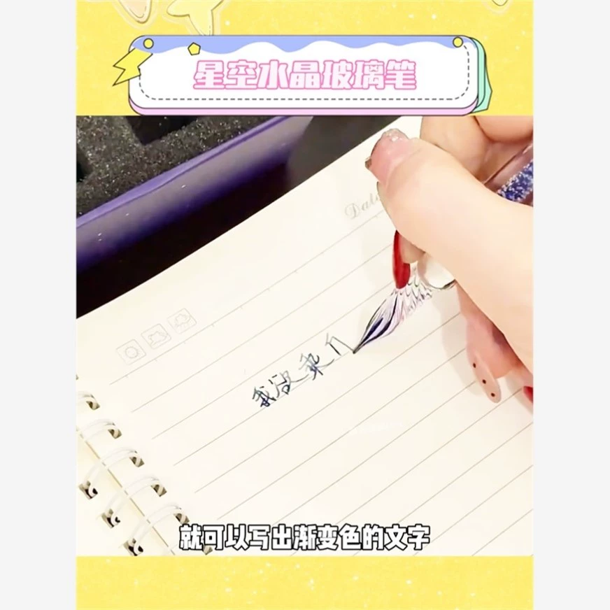 玻璃笔星空蘸水笔高颜值蘸墨水古风礼盒小学生儿童透明水晶玻璃笔