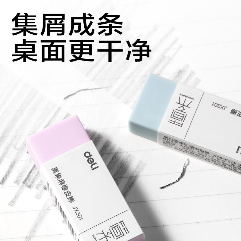 得力真集屑橡皮擦聚屑干净小学生专用擦字成线擦拭成条不易留痕中学生用绘图少屑彩色橡皮儿童素描美术橡皮擦