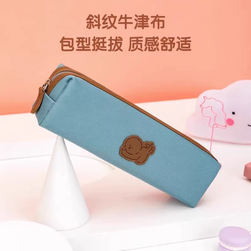 得力莫兰迪色系牛津布笔袋儿童文具盒流行简约大容量小学生中学生文具袋男生女生可爱便携帆布铅笔袋