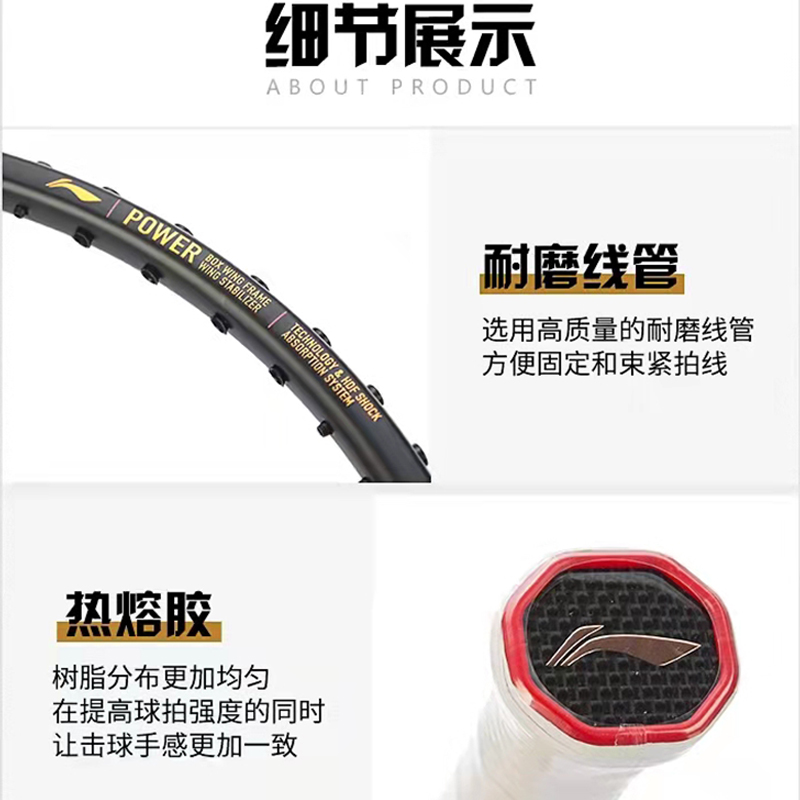 李宁专业比赛高端羽毛球拍雷霆80碳素纤维耐打高磅进攻型单拍正品