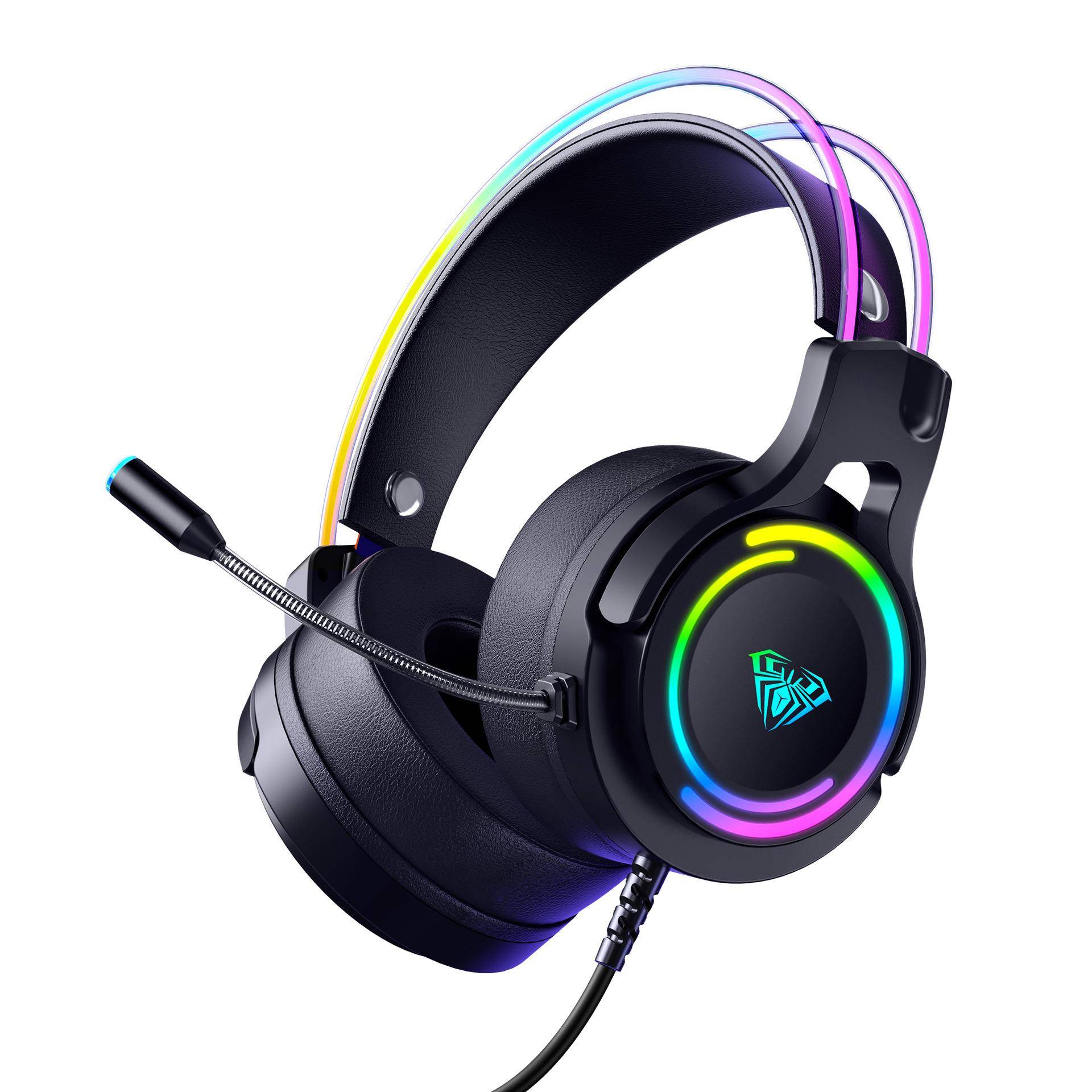 狼蛛爆款游戏耳机吃鸡有线发光电竞头戴式笔记本电脑7.1声辨耳麦