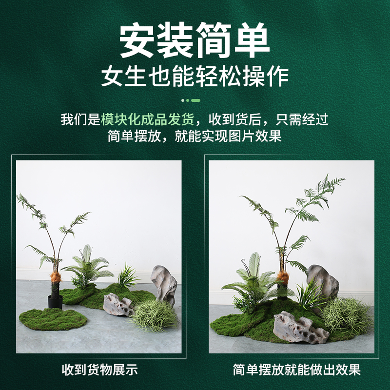 仿真金丝猴头蕨绿植造景组合室内软装苔藓景观橱窗假植物装饰摆件