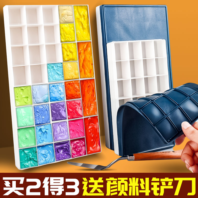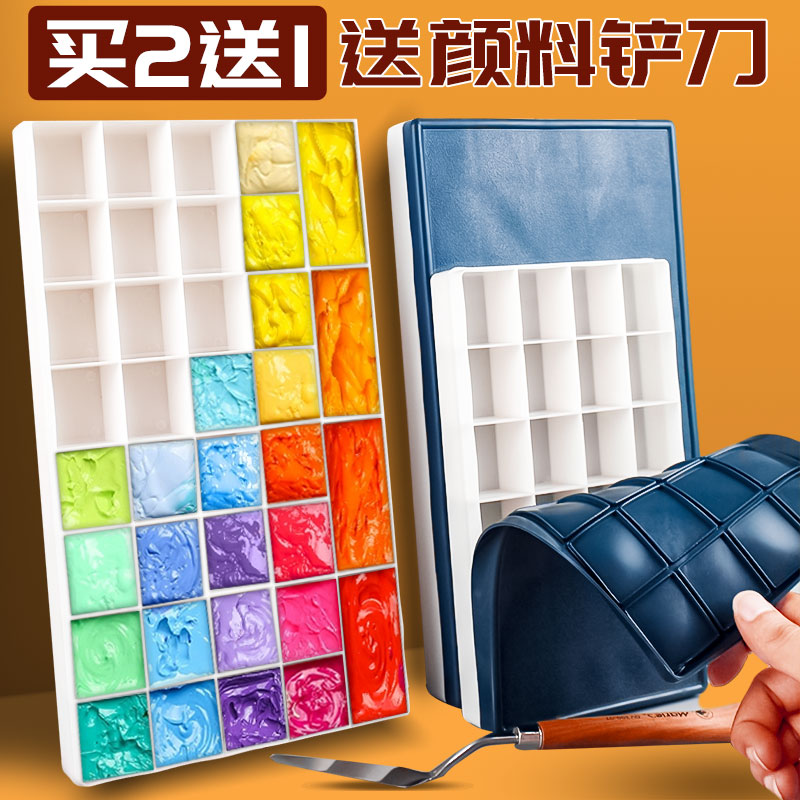 颜料调色盒 24格36格48格软盖水粉盒美术生专用保湿便携小格子分装12格空盒带盖24色36色42色