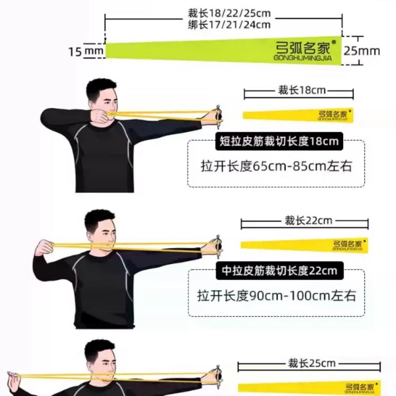 弓弧名家2515锥度第四代扁皮筋暴力加厚高弹耐用弹弓25大锥度皮筋