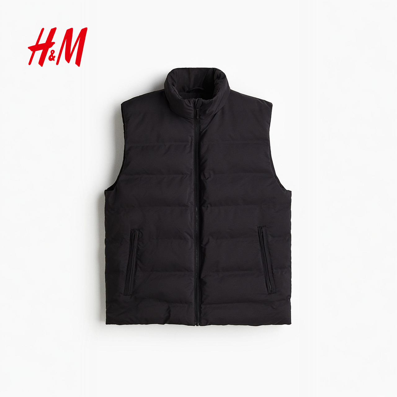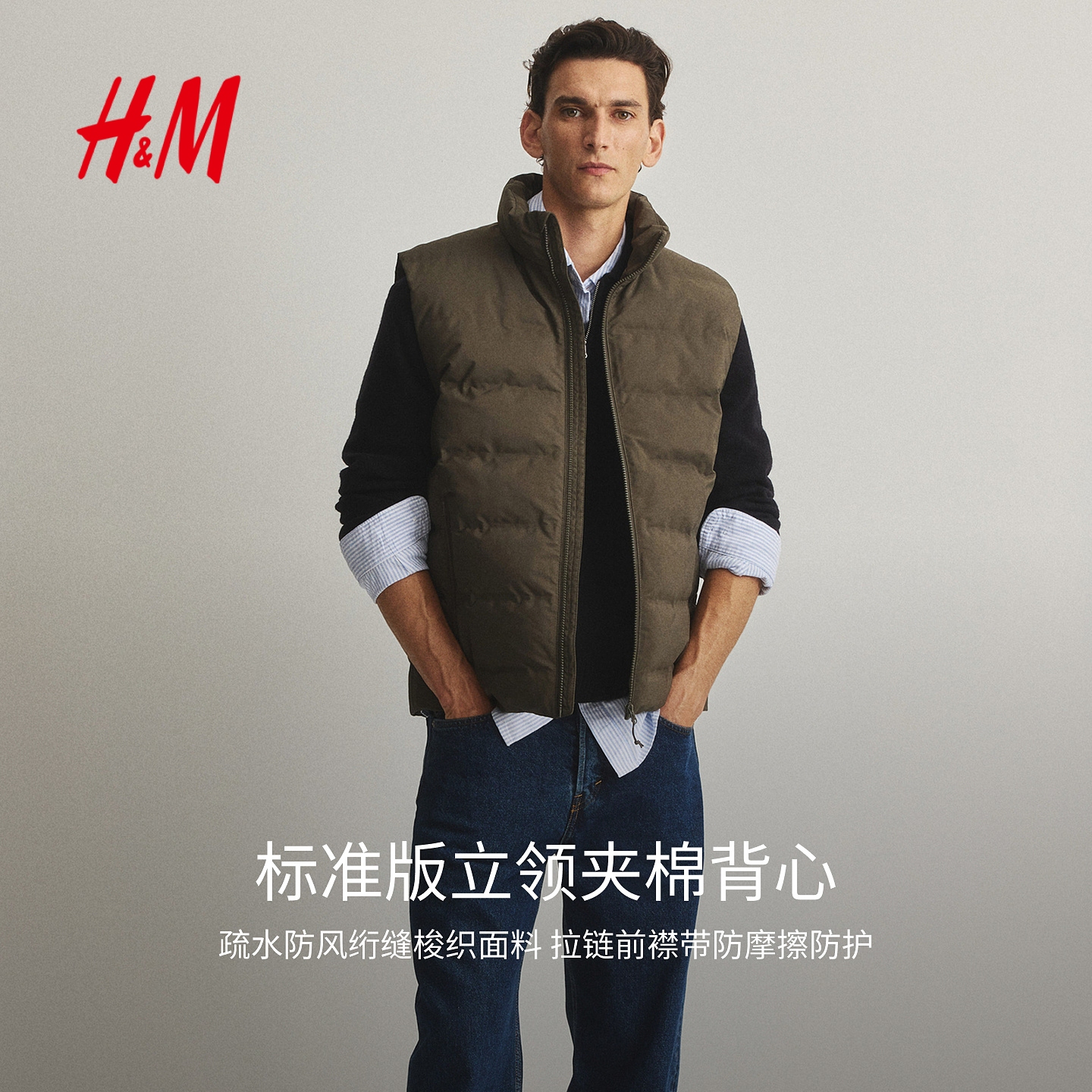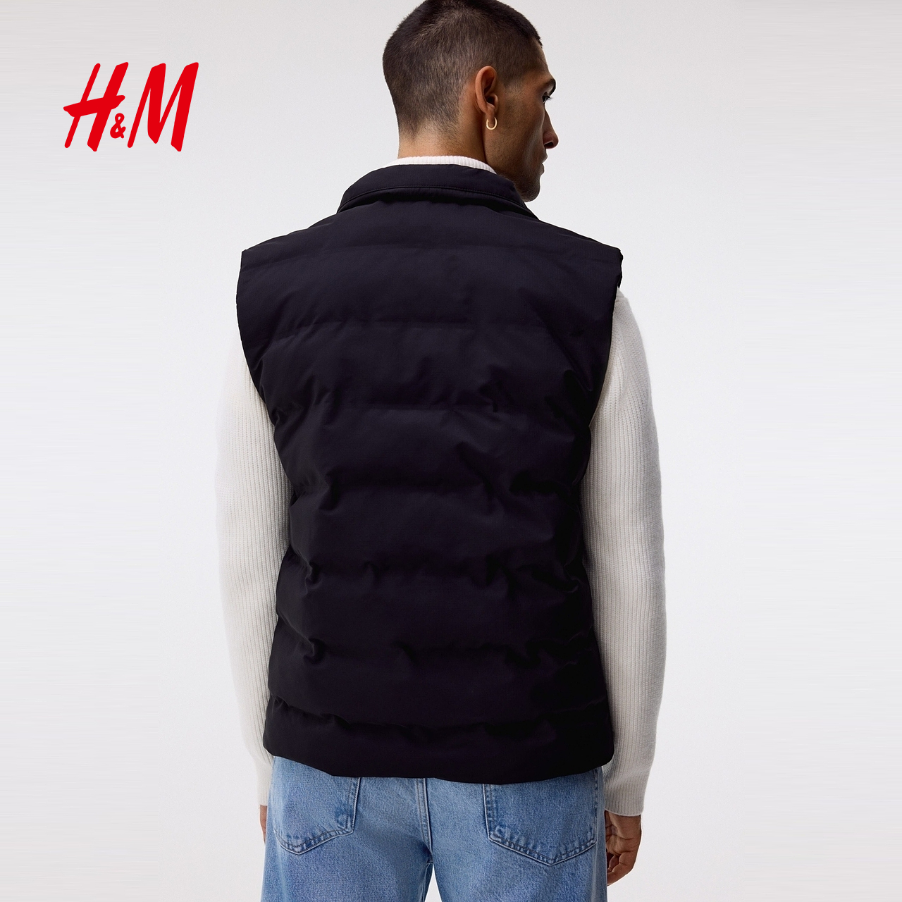 HM男装棉衣2025冬季新款立领无袖疏水防风外出夹棉背心1274643