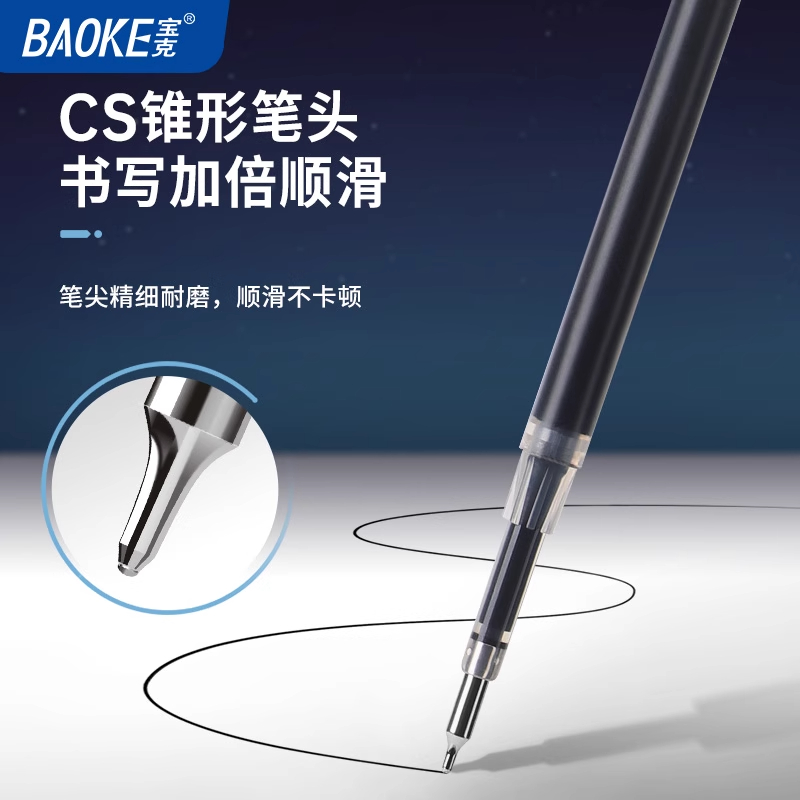 宝克CS锥形笔头按动笔芯黑色替芯刷题按动中性笔替芯按压笔芯2730