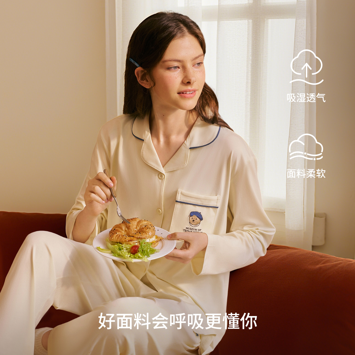 TeenieWeenie小熊女士睡衣女款2025新款男士纯棉长袖情侣家居服