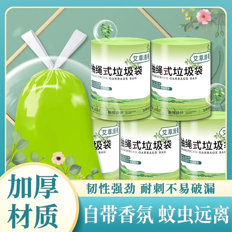 自带香氛加厚抽绳家用垃圾袋子特厚加大一次性厨卫用祛味清香袋子