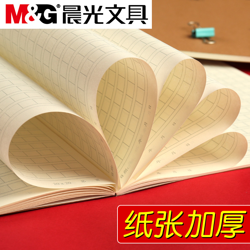 晨光本味B5作文本小学生用400格带修正栏加厚作文薄牛皮纸封面语文写作本语文作业本无线装订本作文格子本