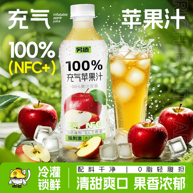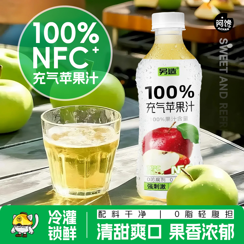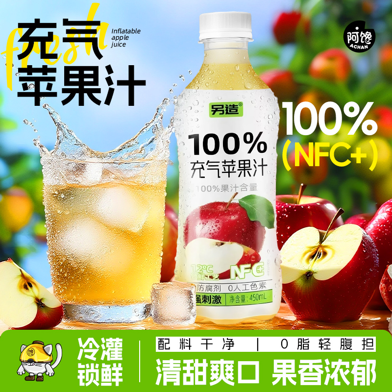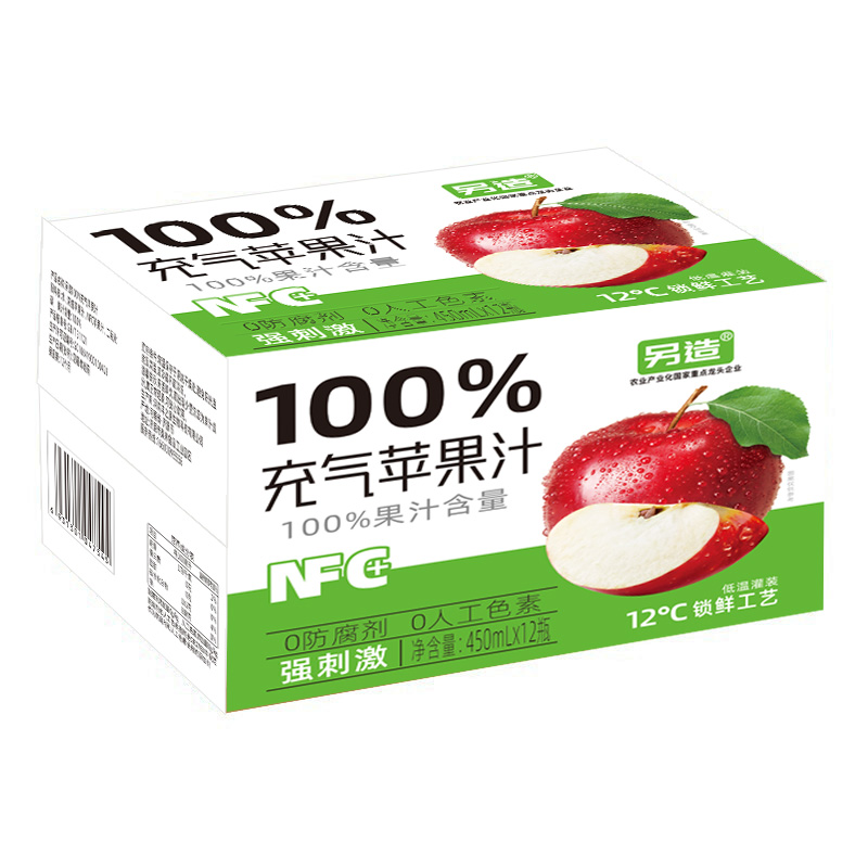 另造NFC+100%充气苹果汁450ml*12瓶纯果汁NFC+饮料整箱工厂批发价