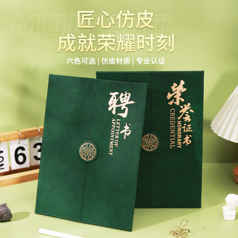 皮革PU三折聘书外壳定制获奖证书封皮定做烫金荣誉证书制作结业证书收藏证书制作优秀员工颁奖状可开发票