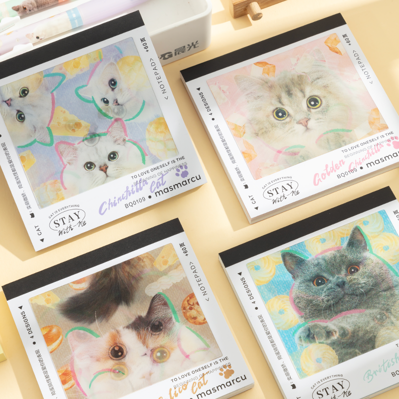 晨光全是喵方形便签本可爱猫咪插画高颜值学生用记事本萌宠小猫彩插内页趣味光栅封面随身小本子手账masmarcu