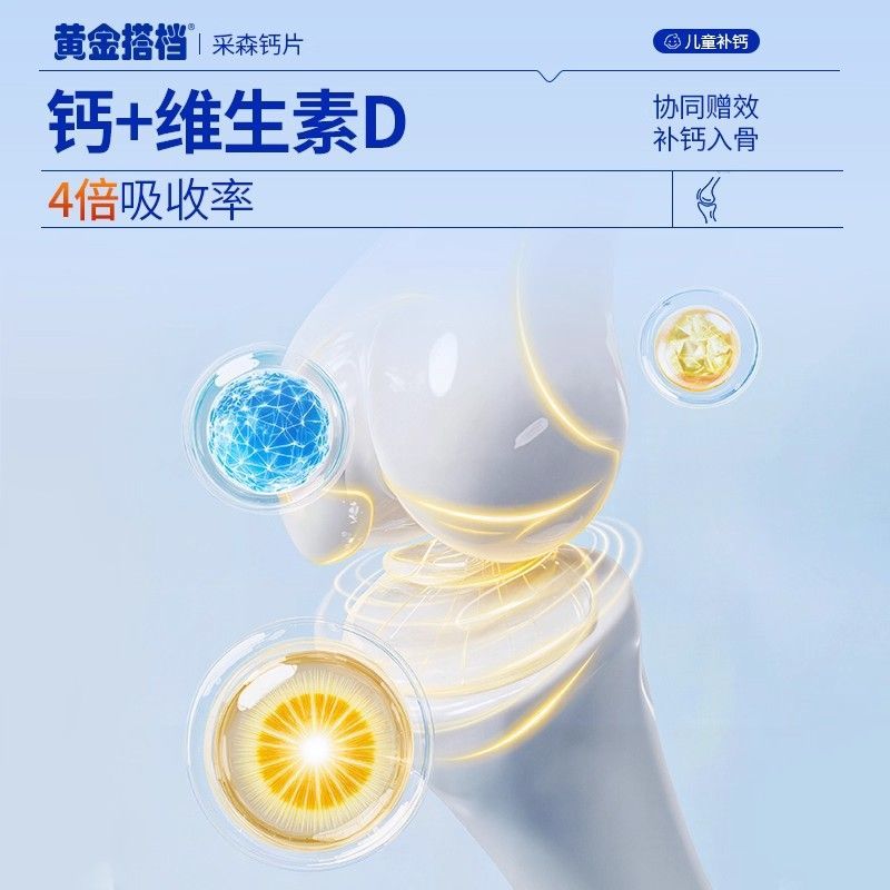 黄金搭档儿童钙片维生素d片儿童青少年长高1到10岁碳酸钙咀嚼片