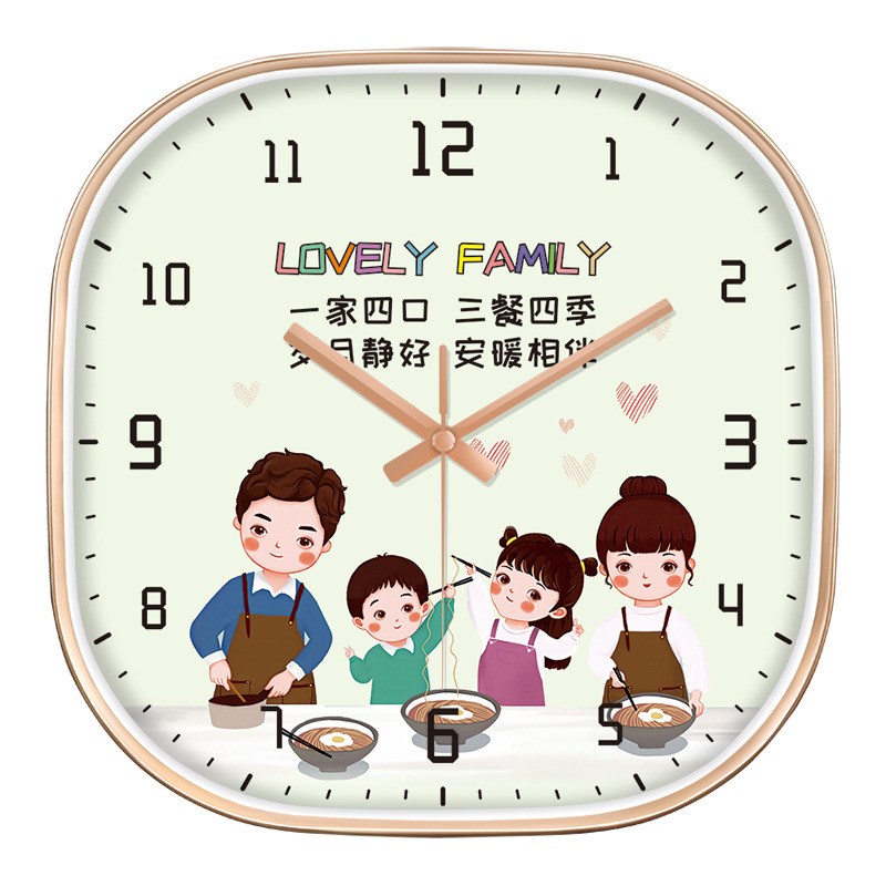 静音家庭挂钟一家人卧室时钟客厅创意温馨挂表卡通石英钟自动对时