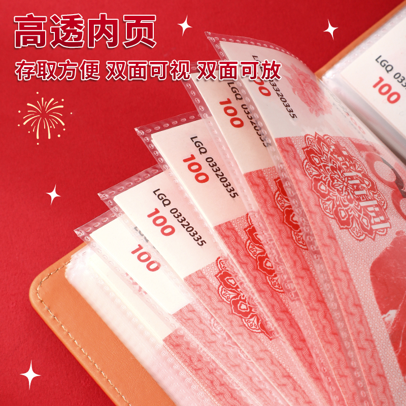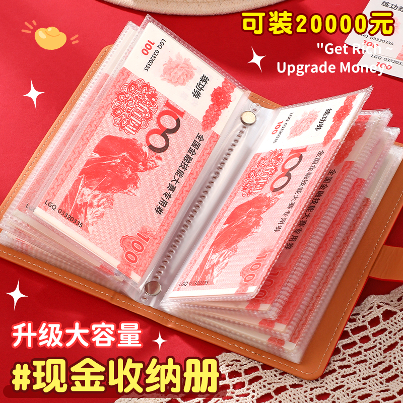 现金存钱本百元收藏册存钱夹钱册2025年新款儿童大容量带密码锁网红理财记账本存钱收纳带5万红包压岁钱本子