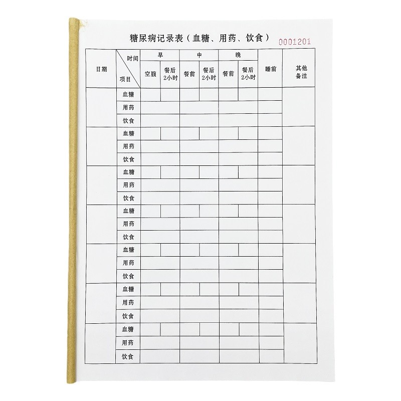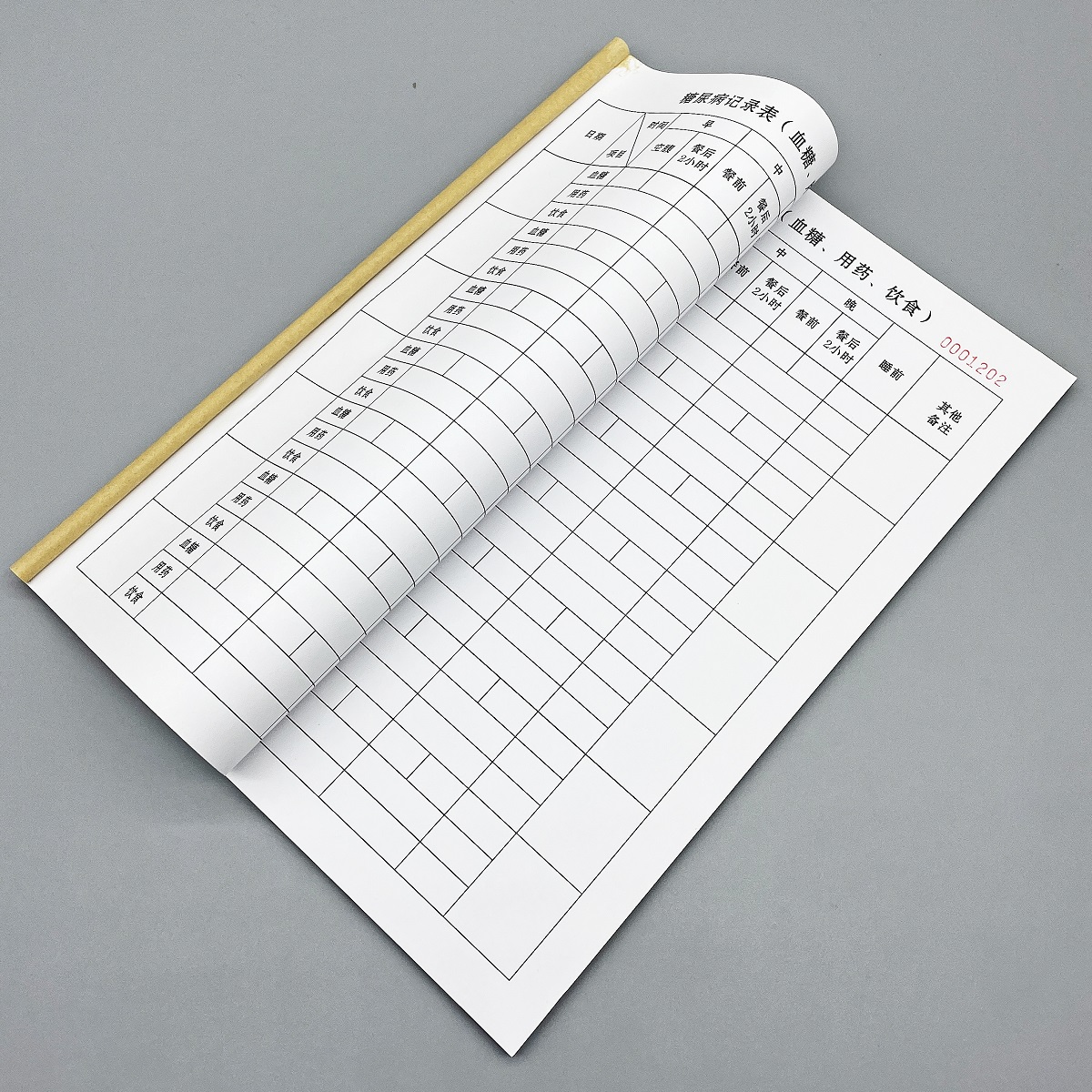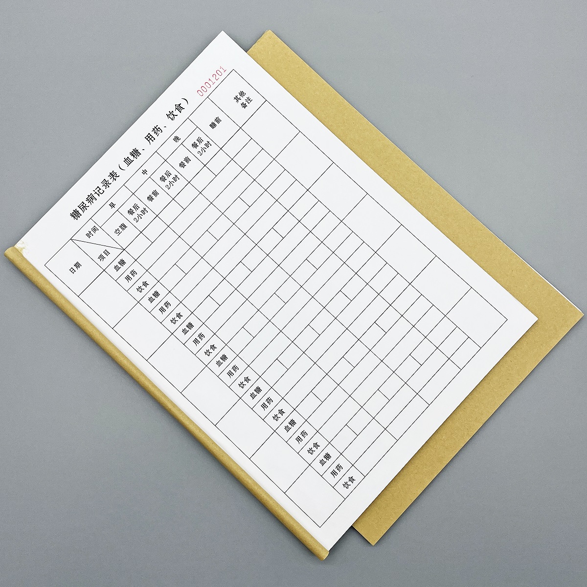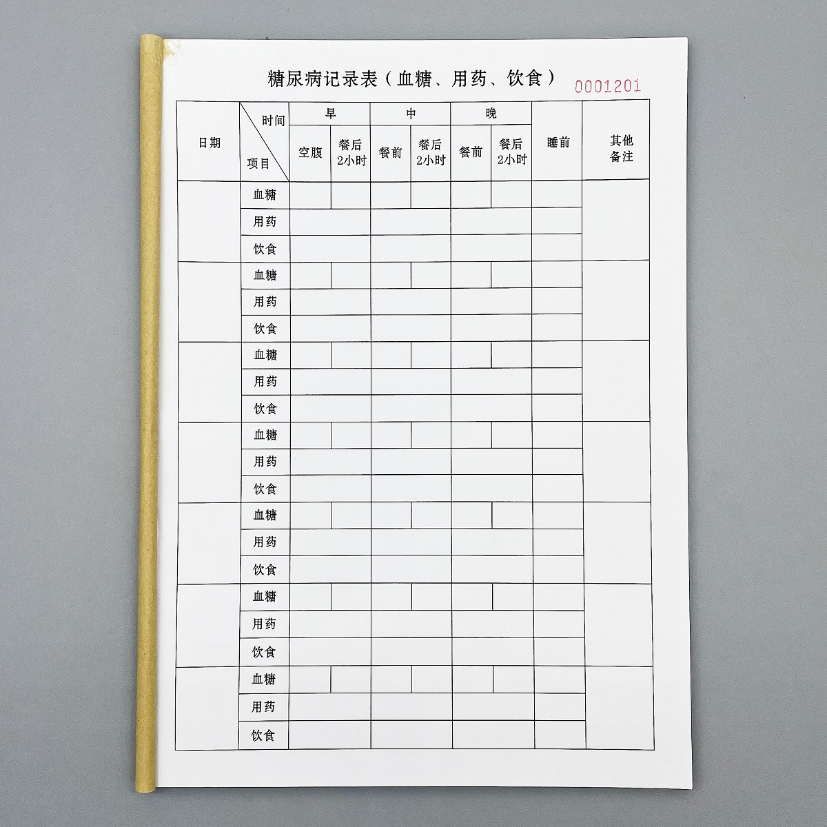 糖尿病记录表定制病人血糖检测追踪表订做家庭自用血压监测登记表