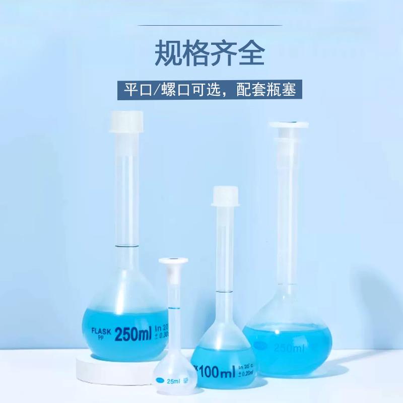 比克曼生物BKMAMLAB塑料容量瓶平口螺口带盖加厚PP材质耐高温酸碱