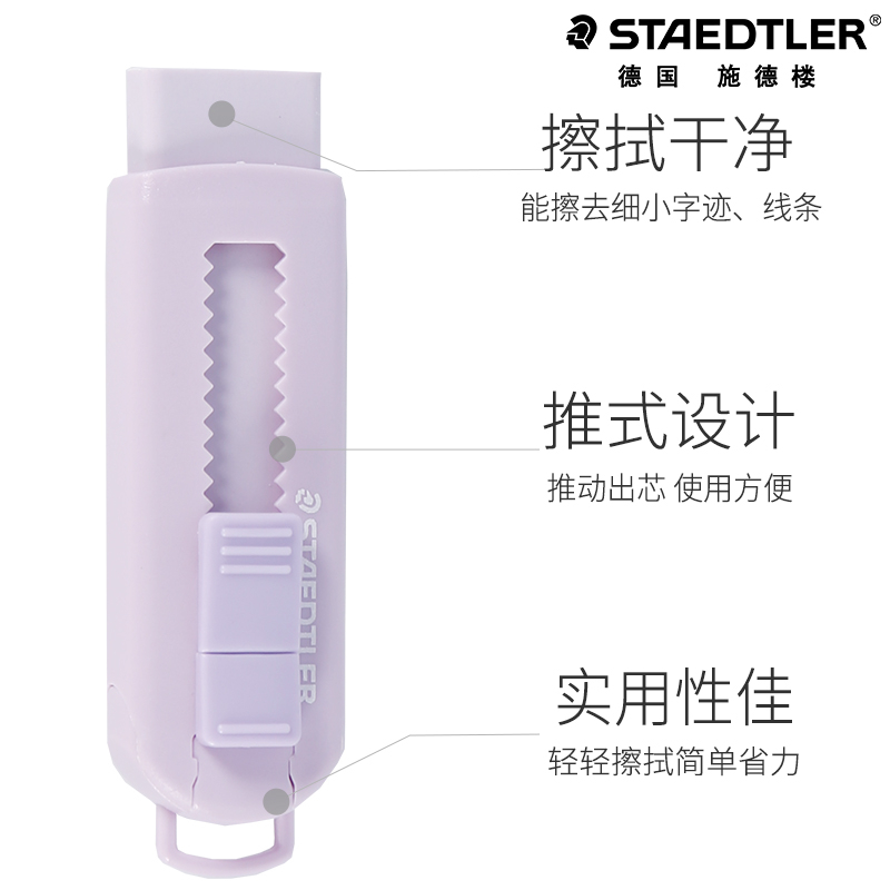 德国施德楼橡皮擦可推式彩色橡皮马卡龙色伸缩可推式橡皮擦不含PVC安全环保525 PS1擦得干净橡皮